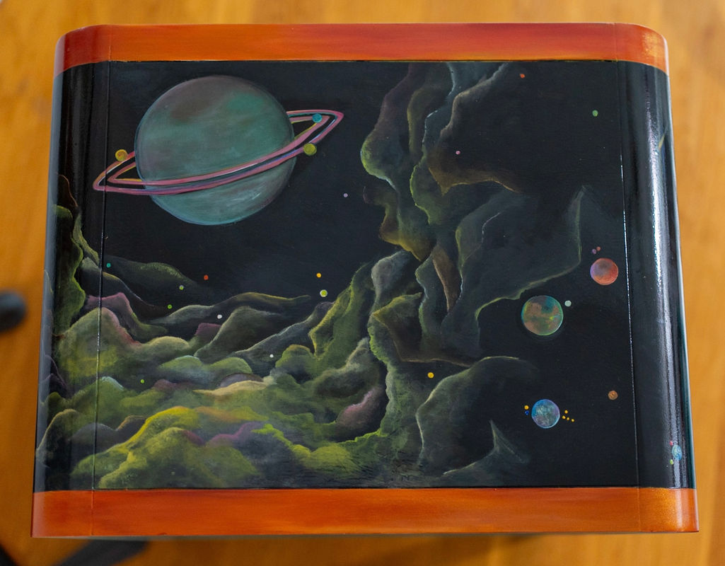 I got the bug for large scale art in earnest during high school while being elected to facilitate a backdrop for a school production. This application of my art showed me the potential to transform a space and create a world where people find temporary respite. The realization that your personal work can impact others is intoxicating, transformative and had me hooked.